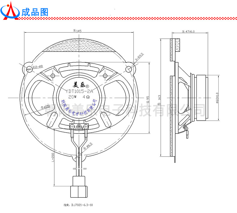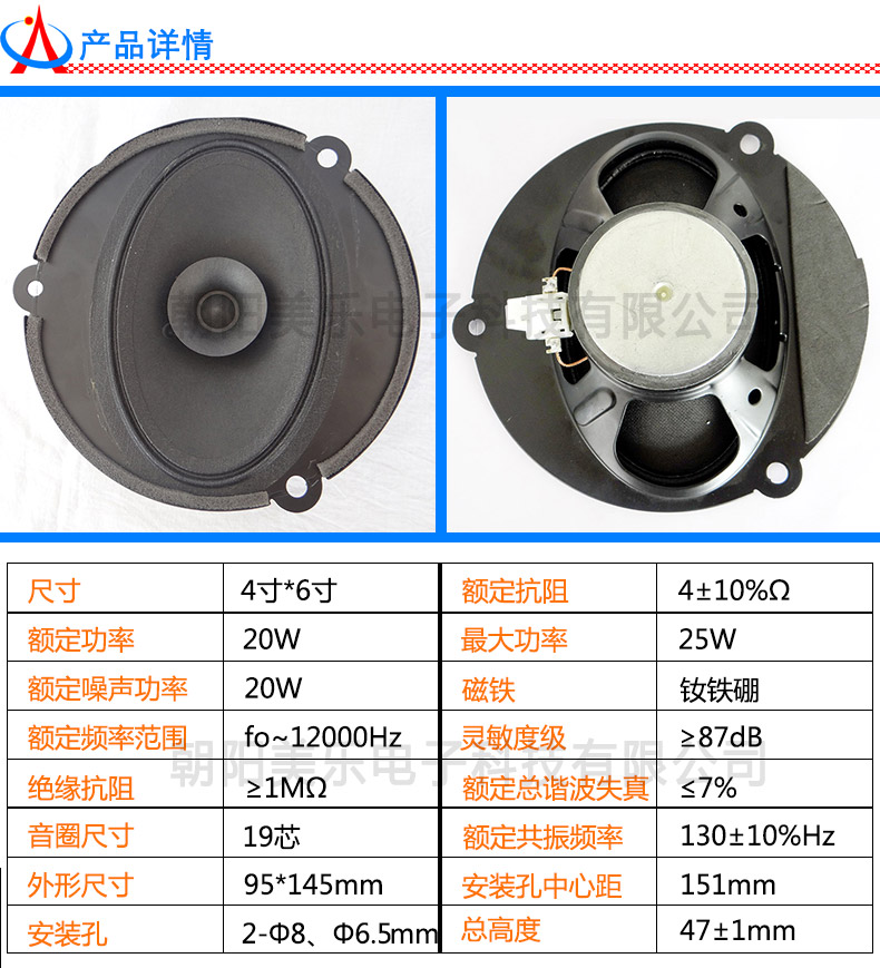【YDT1015-2A】4*6寸20W4Ω椭圆形轻客面包汽车扬声器